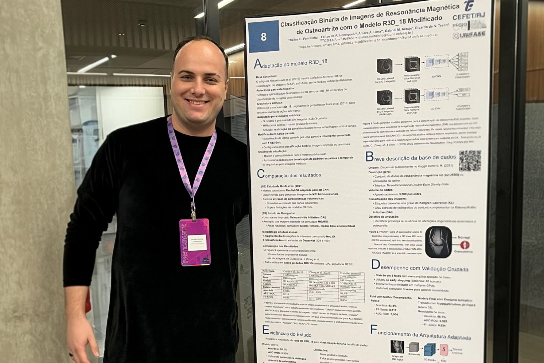 Intitulado “Classificação Binária de Imagens de Ressonância Magnética de Osteoartrite com o Modelo R3D_18 Modificado”, o artigo investiga o uso de inteligência artificial no suporte ao diagnóstico precoce da osteoartrite do joelho, explorando a classificação binária (imagens normais versus anormais) em exames de ressonância magnética. De acordo com Thalles, a pesquisa adapta a rede neural R3D_18, originalmente desenvolvida para reconhecimento de vídeos, para identificar alterações degenerativas associadas à doença.