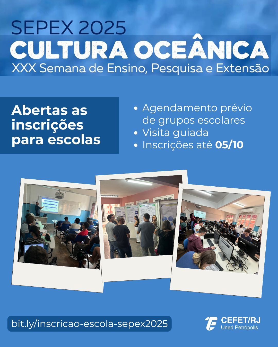 O Cefet/RJ Petrópolis vai promover a Semana de Ensino, Pesquisa e Extensão (Sepex 2025) entre 14 e 16 de outubro. O evento reúne atividades acadêmicas, educacionais e...
