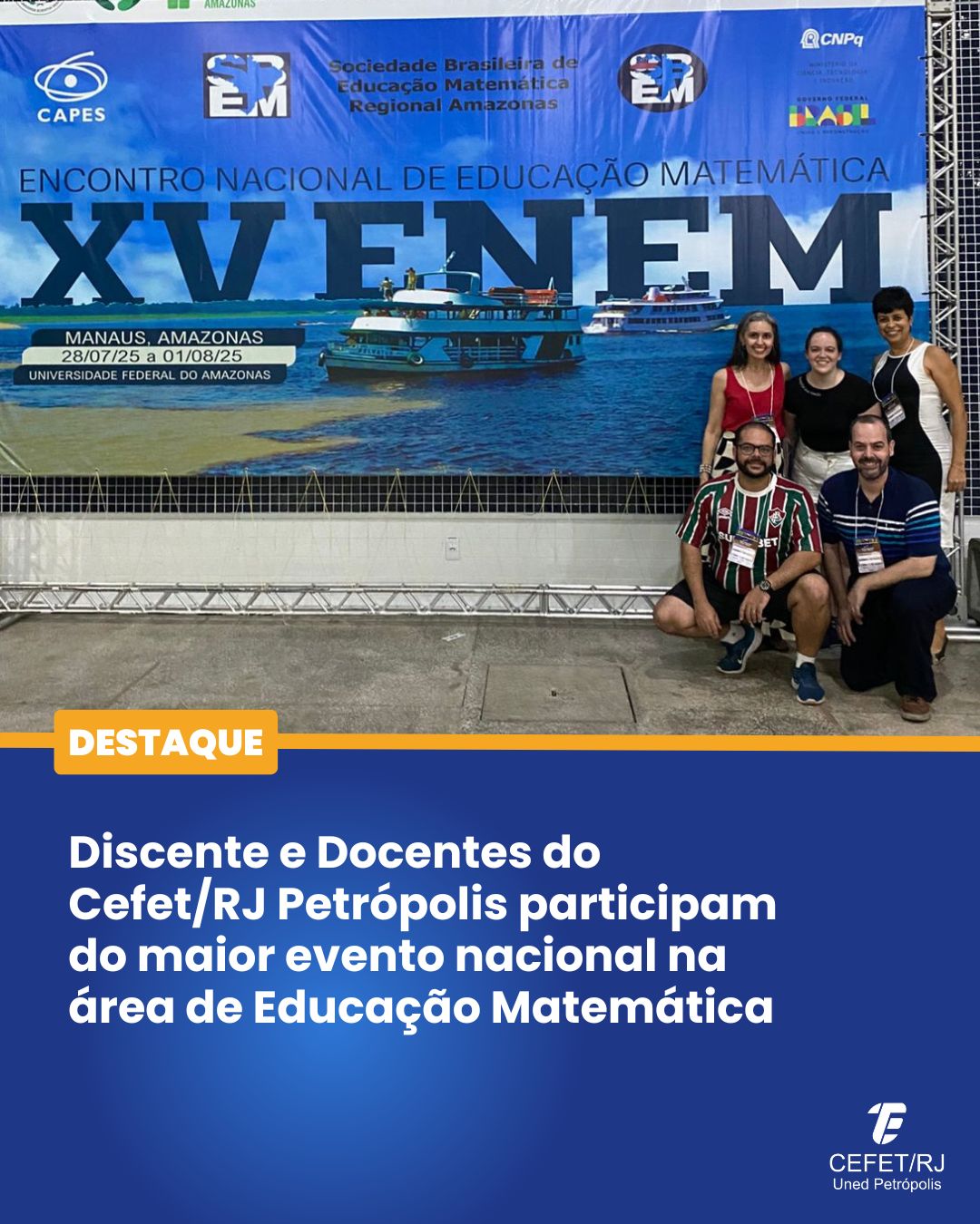 O Cefet/RJ Petrópolis marcou presença no XV Encontro Nacional de Educação Matemática (ENEM), realizado na Universidade Federal do Amazonas (UFAM), em Manaus, de 28 de julho a 1º de...