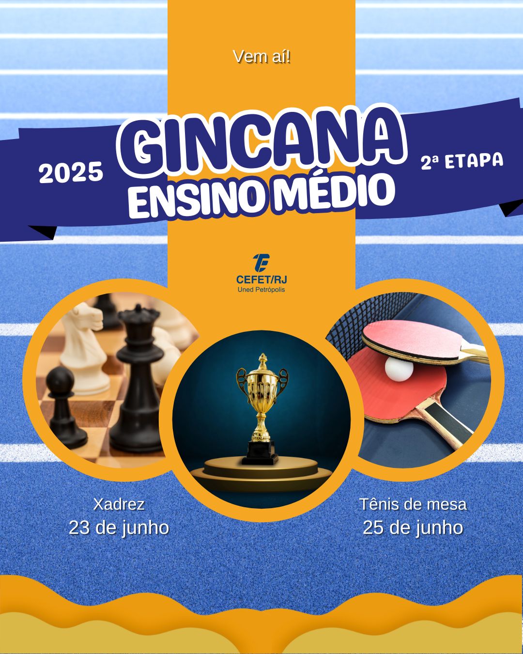 Nos dias 23 e 25 de junho, serão realizadas as atividades da 2ª etapa da “Gincana do Ensino Médio” do Cefet/RJ Petrópolis: xadrez e tênis de mesa. As competições acontecerão na...